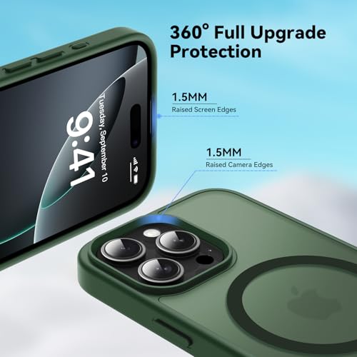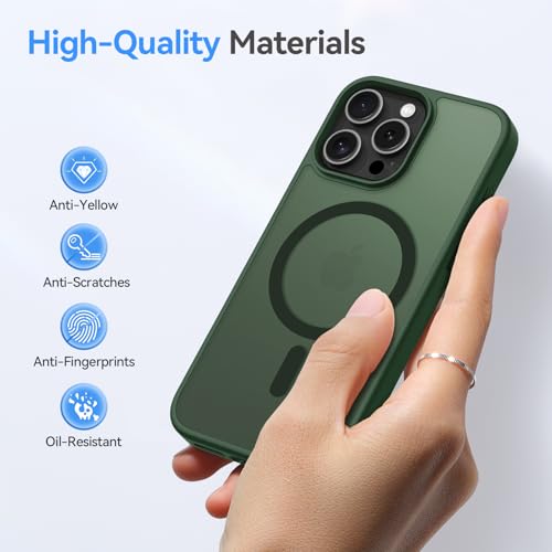Natiiozie Magnetic Case Compatible with iPhone 16 Pro [Compatible with MagSafe] Military Grade Shockproof Phone Case Anti-Scratch Slim Translucent Matte Case for iPhone 16 Pro - Dark Green