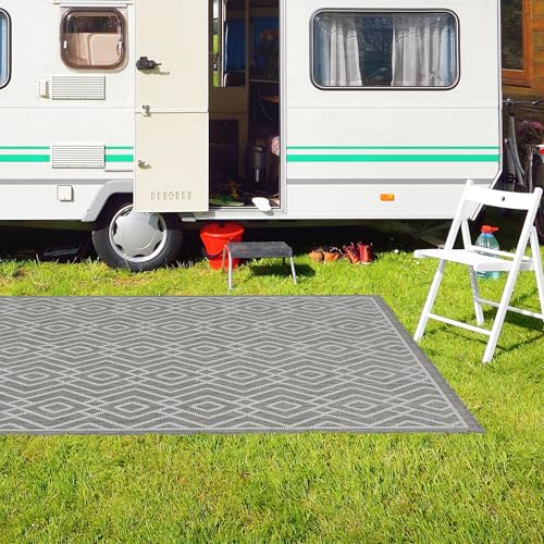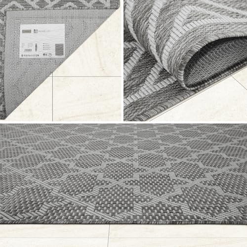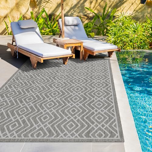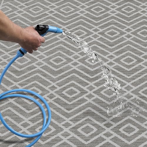 homeart Outdoor Rugs | Easy-Cleaning Indoor & Outdoor Area Rugs for Porch, Deck, Balcony, Garden, Picnic, Kitchen, Hallway | UV & Weather-Resistant Large Patio Rug Mats | D.Grey Cream,140x200