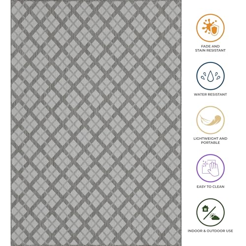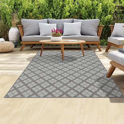 homeart Outdoor Rugs | Easy-Cleaning Indoor & Outdoor Area Rugs for Porch, Deck, Balcony, Garden, Picnic, Kitchen, Hallway | UV & Weather-Resistant Large Patio Rug Mats | D.Grey Cream,140x200