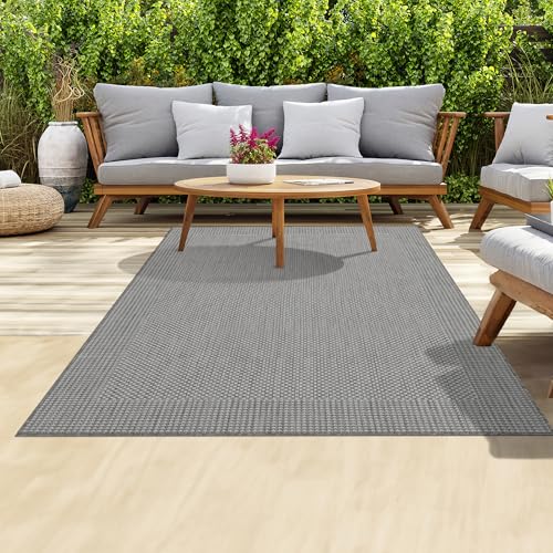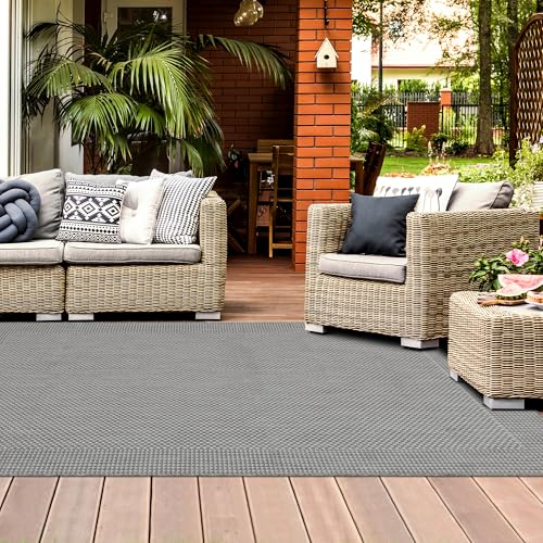 homeart Outdoor Rugs | Easy-Cleaning Indoor & Outdoor Area Rugs for Porch, Deck, Balcony, Garden, Picnic, Kitchen, Hallway | UV & Weather-Resistant Large Patio Rug Mats | D.Grey Cream,120x170