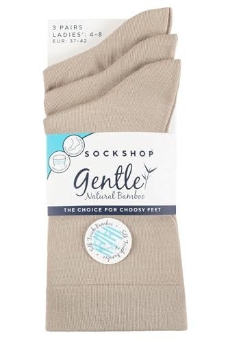 SockShop Ladies Gentle Bamboo Socks with Smooth Toe Seams in Plain and Striped Designs Pack of 3 (UK, Numeric, 4, 8, Regular, Regular, White)