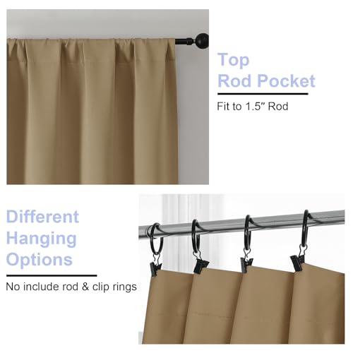 Simplebrand Ava Blackout Curtains for Patio 108 Inches Long 2 Panels Set, Solid Thermal Insulated Room Darkening Rod Pocket Window Treatment Curtains Blackout Drapes, W50 x L108 Inch, Taupe