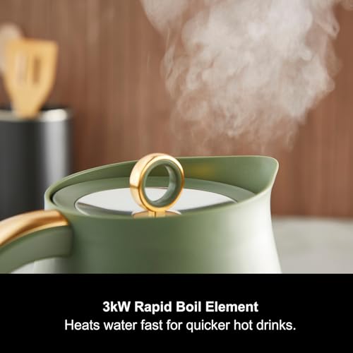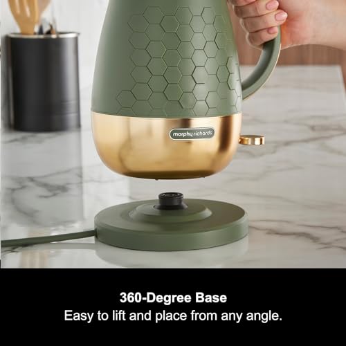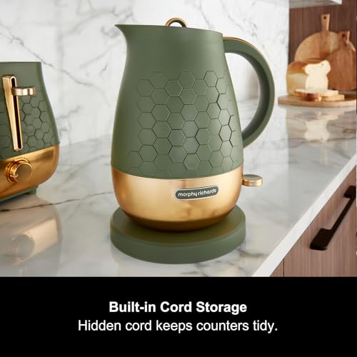 Morphy Richards Cassini Jug Kettle, 1.7L, 3Kw Rapid Boil, Precision Pour Spout, Boil Dry Protection, Cord Storage, Anti-Limescale Filter, Olivine Green & Gold, 103022