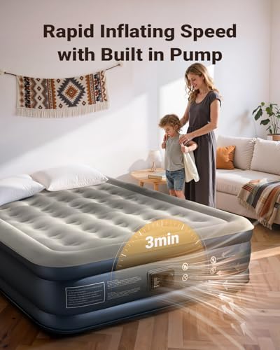 iDOO Inflatable Air Mattress, King Size Airbed, Air Bed, Blow Up Mattress Double with Built-in Pump, 3 Mins Self Inflating Portable Inflatable Bed for Home Guest Camping Travel 203x152x38cm