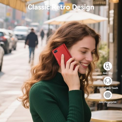 ivencase Compatible with iPhone SE 2022/2020, iPhone 7/8 Phone Case with 1 Screen Protector, [RFID Blocking] PU Leather Flip Wallet Case with Card Slots Stand Magnetic Cover 4.7 Inch - Red