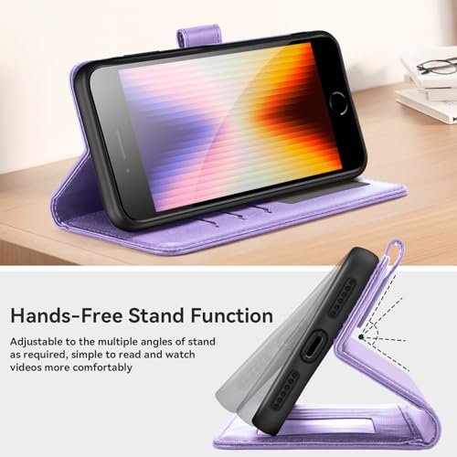 ivencase Compatible with iPhone SE 2022/2020, iPhone 7/8 Phone Case with 1 Screen Protector, [RFID Blocking] PU Leather Flip Wallet Case with Card Slots Stand Magnetic Cover 4.7 Inch - Light Purple