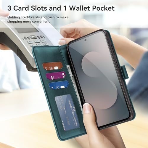 ivencase Compatible with Samsung Galaxy S25 FE 5G Case with 1 Screen Protector, [RFID Blocking] PU Leather Flip Wallet Case with Card Slots Stand Magnetic Phone Case for Samsung S25 FE - Teal