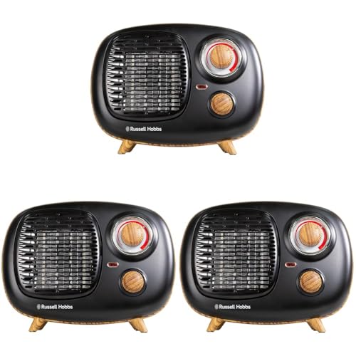 Russell Hobbs 1500W/1.5KW Electric Heater, Retro Portable Ceramic Heater Scandi Wood Effect in Black, 2 Heat Settings, Adjustable Thermostat, 15m2 Room Size, RHRETPTC2001WDB, 2 Year Guarantee