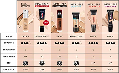 L'Oreal Paris Cover Liquid Foundation, With 4% Niacinamide, Long Lasting, Natural Finish, Available in 20 Shades, SPF 25, Infallible 24H Matte Cover, Shade 130, 30ml (Pack of 2)