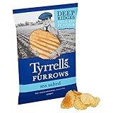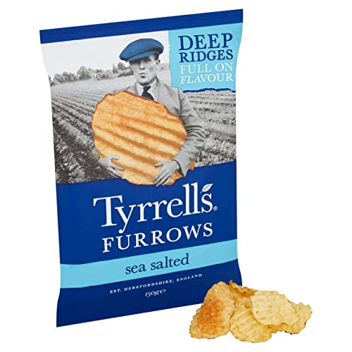 Tyrrells Crisps Furrows SEA SALTED 150g Sharing Bag - Hand-cooked & spun for an exquisite fresh taste. No artificial ingredients (No artificial flavour, colours or MSG) (Pack of 4)