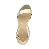 AJVANI Womens Mid Block Heel Ankle Strap Heeled Sandals in Metallic Gold Size: 4 - Metallic Gold - Size: 4