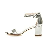 AJVANI Womens Mid Block Heel Ankle Strap Heeled Sandals in Silver Size: 4 Silver 4
