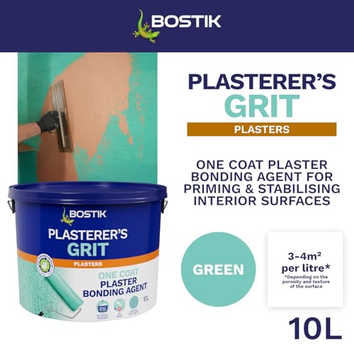 Bostik Plasterer’s Grit, Plaster Bonding Agent Green - 10l - No Mixing - Suitable For Interior Use - Easy to Apply