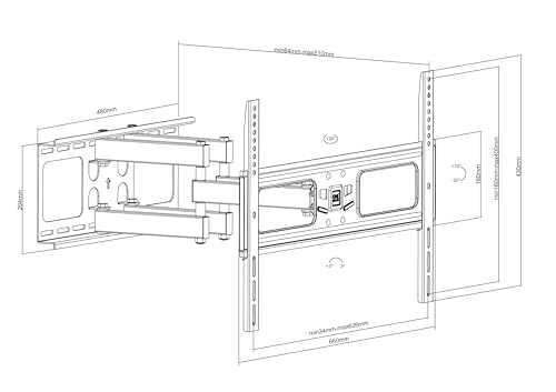 One For All WM4661 Full Motion TV Bracket – Swivel (120°) Tilt (15°) Wall Mount – Screen size 32-90 Inch – Max Weight 60kg – VESA 200x200 to 600x400 - Free Toolbox app – Black - WM4451