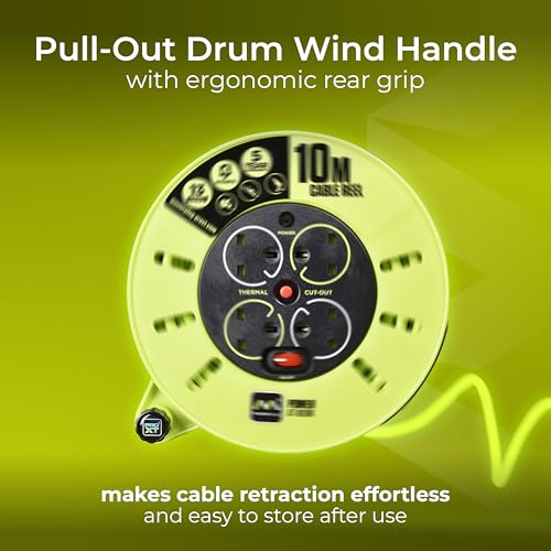 10 Metre Cassette Masterplug High Vis 4 Socket Cable Reel Extension Lead