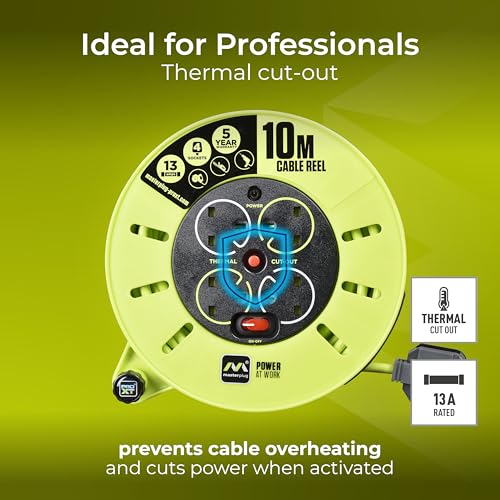 Masterplug Pro-XT 10m 4 Socket Cassette Cable Reel Extension Lead Multicolor