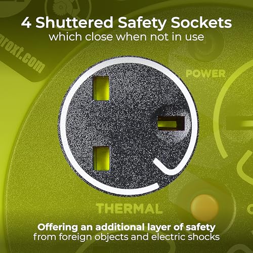 Masterplug Four Socket, 10 Metre Premium Cassette Reel, Medium Power Cable Extension Reel, Thermal Cut-Out & Power Indicator, Heavy Duty, Pro-XT, Grey/Green, 13A, 4G, 10m, CMU10134SL
