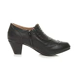 Ajvani Womens Ladies mid Heel Buttons Zip Brogue Ankle Shoe Boots Booties , Black Matte, 6 UK