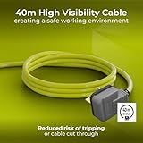 Extension Lead Reel 40m Cable 4 Gang - High Visibility Heavy Duty Mains Electric