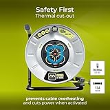 Masterplug Premium 4 Socket Metal Open Cable Reel with 40 Metre High-Vis Cable, Heavy Duty Extension Reel, Thermal Cut-Out & Power Indicator, Large, Pro-XT, Grey/Green, 13A, 4G, 40m, OTLU40134SL