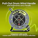 Masterplug Pro-XT Four Socket Open Cable Reel Extension Lead with Winding Handle, Thermal Cut Out and Power Switch, 25 Metres High Visibility Cable, Green