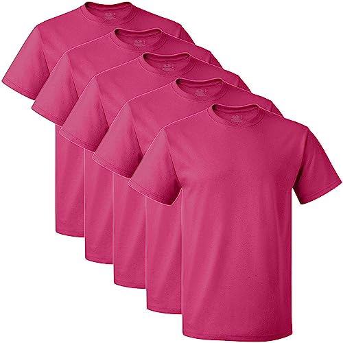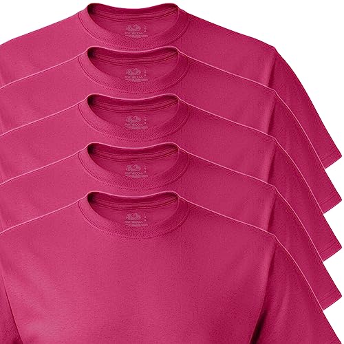 Fruit of the Loom Mens Crew Neck T-Shirt Multipack, Pink,White, S