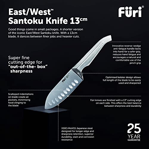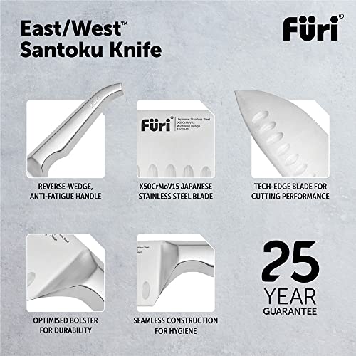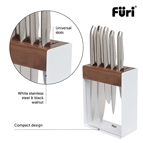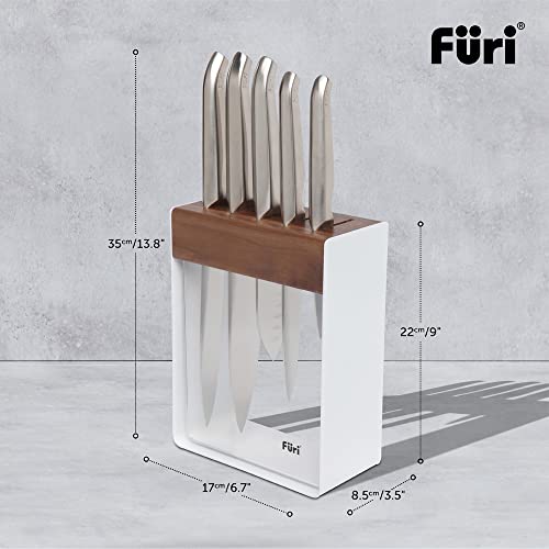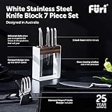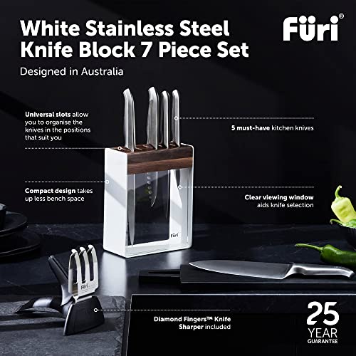Furi Pro White Steel Knife Block Set 7 pc, Knife Block with Five Premium Knives and Sharpener for a Superior Cutting Performance, Stainless Steel Blades, Ergonomic Reverse-Wedge, Anti-Fatigue Handle