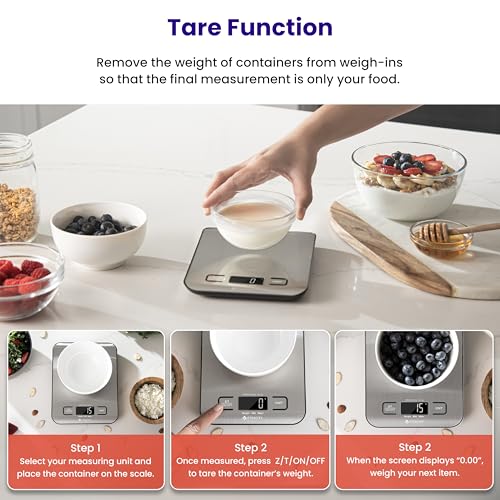 Etekcity Digital Kitchen Scales, Professional Food Weighing Scales with Premium Stainless Steel, Backlit LCD Display, Incredible Precision up to 1 g (5 kg Maximum Weight), Silver