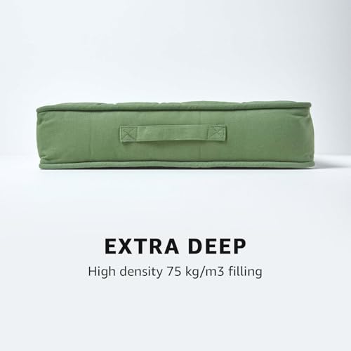 Homescapes Unisex Cotton Armchair Booster Cushion in Dark Green Size: 50cm x 50cm Dark Green 50cm x 50cm female