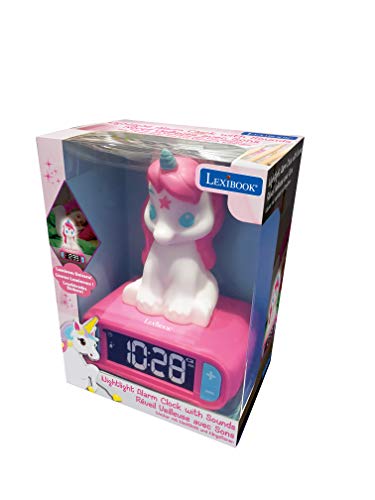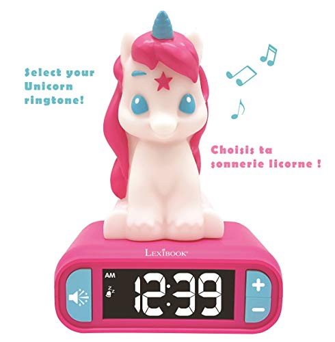 LEXIBOOK, Unicorn, Nightlight alarm clock, Sounds and Melodies, LCD Backlit screen, Luminous, Snooze, Pink, RL800UNI