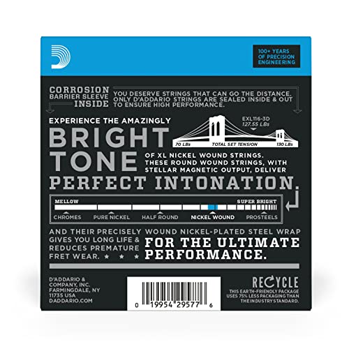 D'Addario EXL116 Nickel Wound Electric Guitar Strings, Medium Top/Heavy Bottom, 11-52, 3 Sets