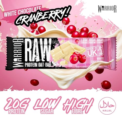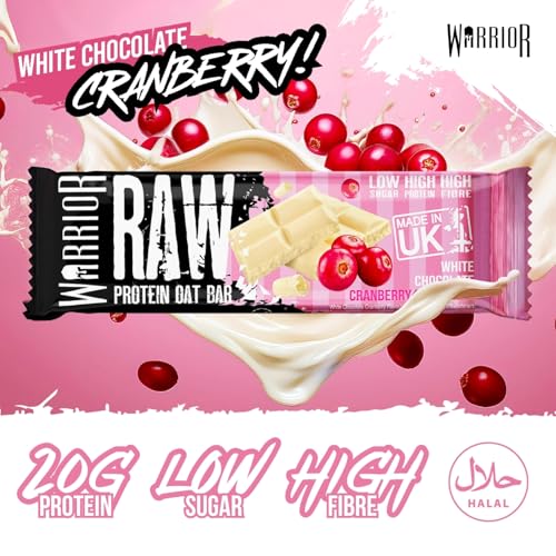 Warrior Raw Protein Bars – 12 x 75g High Protein Snack – High Fibre, Low Sugar – Ideal Meal Replacement or Healthy Nutrition Energy Snacks - Oat Bar Flapjacks – UK Made (White Chocolate Cranberry)