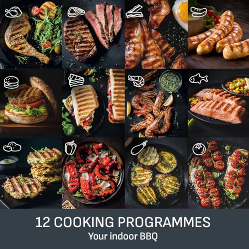 | special features | 12 automatic cooking programmes for both meat and vegetable lovers Red Meat, Burger, Sausage, Panini, Fish, Chicken Breast, Seafood, Bacon, Potato, Aubergine, Pepper and Tomato., Refill feature allows you to immediately continue cooking the same food, Searing Boost mode for stronger searing and restaurant-quality results |
