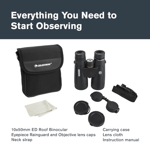 Celestron 72335 Nature DX ED 10x50 Binoculars with Extra-Low Dispersion Objective Lenses for Outdoor and Birding, Fully Multi-Coated with BaK-4 Prisms, Rubber armoured, Fog & Waterproof