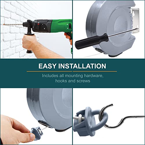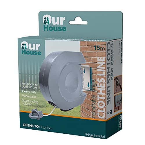 Our House Retractable Clothes Line, 15 Metre Extendable Washing Line for Outdoor Drying, Perfect for Gardens Balconies and Yards, Fits Securely to Wall & Extends & Retracts as Needed, Simple to Use