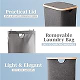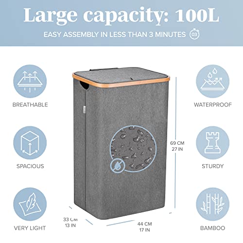 LONBET 100L Laundry Basket with Lid and Sturdy Bamboo - Single, Grey