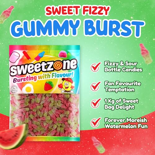 Sweetzone Watermelon Bottles 1Kg | Fizzy Watermelon Flavoured Sweets | Halal