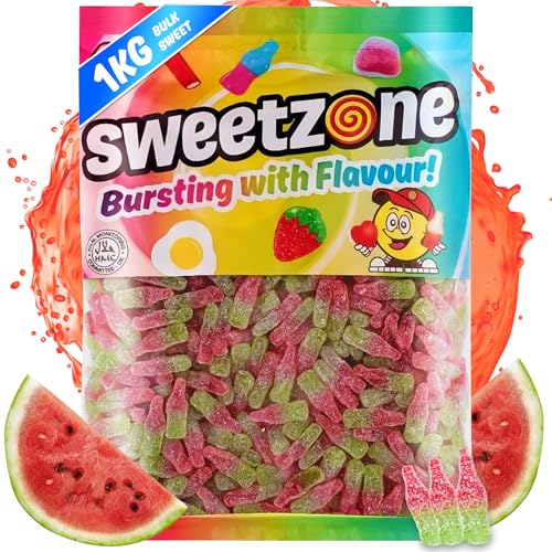 Sweetzone Watermelon Bottles, 1kg Bag of Sweets, Experience the Watermelon Sweet, Jelly Sweets and Chewy Candy, Mouthwatering Tangy Flavour for Halal Sweet for All Ages