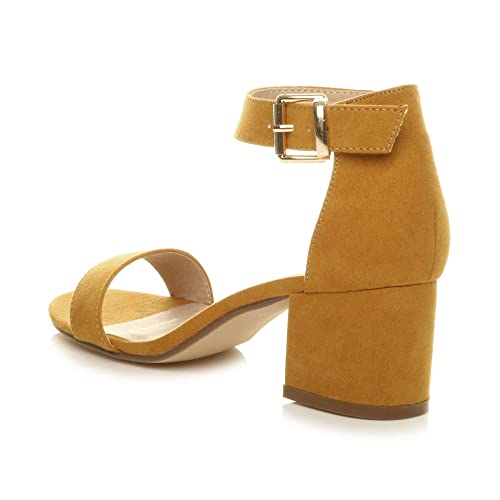 AJVANI Womens Mid Block Heel Ankle Strap Heeled Sandals in Mustard | Size: 5