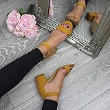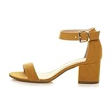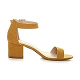 AJVANI Womens Mid Block Heel Ankle Strap Heeled Sandals in Mustard Size: 5 - Mustard - Size: 5