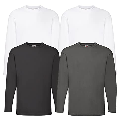 (4XL, Black) Fruit Of The Loom Mens Valueweight Crew Neck Long Sleeve T-Shirt