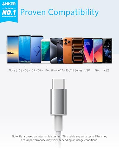 Anker USB C Charger Cable, 2-Pack 6 ft (1.8 m) USB to USB C Cable, USB A to USB C Braided Phone Charger Cable for iPhone 17/16/15, iPad Pro, Samsung Galaxy, and More(Silver
