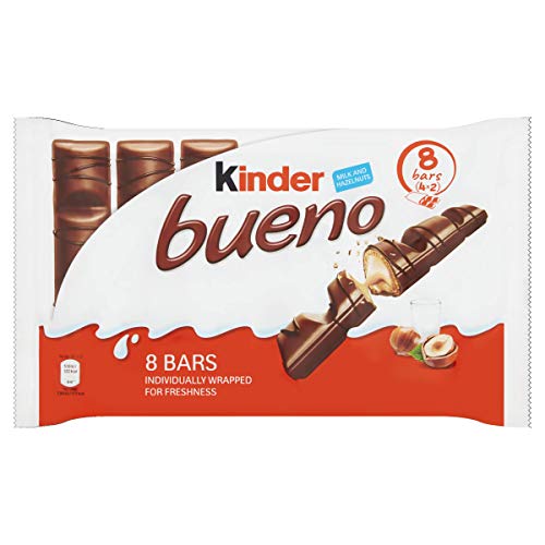 Kinder Bueno Wafer Twin Chocolate Bars, Bulk Chocolate Box, Gift Pack, Milk Chocolate Covered Wafer with Milky and Hazelnut Filling, Pack of 11 x 8 (88pcs)