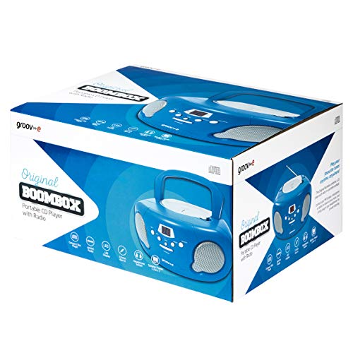 Groov-e Original Boombox Portable CD Player with Radio - Blue, Blue