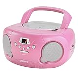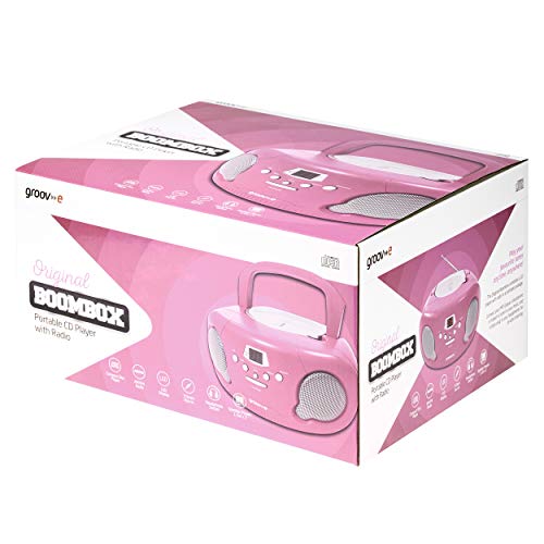 Groov-e Portable CD Player Boombox with AM/FM Radio, 3.5mm AUX Input, Headphone Jack, LED Display - Pink