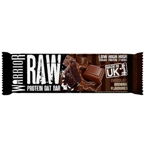 Warrior Raw Protein Bars – 12 x 75g High Protein Snack – High Fibre, Low Sugar – Ideal Meal Replacement or Healthy Nutrition Energy Snacks - Oat Bar Flapjacks – UK Made (Chocolate Brownie)