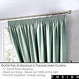 Fusion Pencil Pleat Blackout Curtains – Duck Egg Blue – W46 x L72" (117 x 183cm) – 100% Cotton – Thick Weave – Thermal & Soundproof Drapes – 2 Panels – Pleated Curtains for Bedroom/Living Room