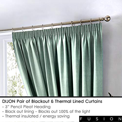Fusion Dijon Thermal & Blackout Fully Lined Pencil Pleat Curtains in Duck Egg Blue Size: 117 cm width x 183 cm drop Duck Egg Blue 117 cm width x 183 cm drop