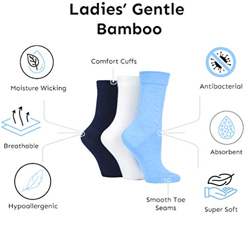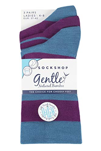 SockShop Ladies Gentle Bamboo Socks with Smooth Toe Seams In Plains and Stripes Pack of 3 Nightshade 4-8