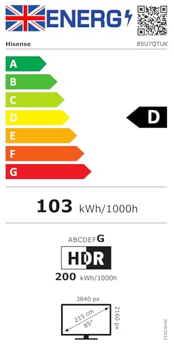 Hisense 85" 85U7QTUK MiniLED QLED 144Hz Smart AI TV - Hi-View AI Engine, 144Hz Game Mode PRO, 2.1 Channel, Dolby Atmos, Quantum Dot Colour, Anti-Reflection with Freely, Disney +, YouTube, Netflix